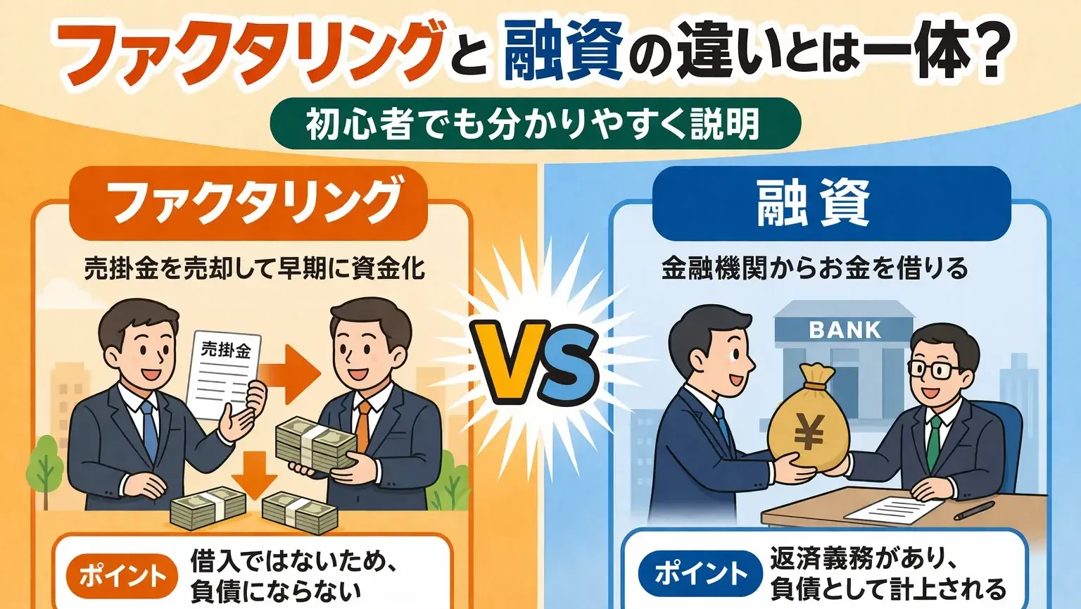 ファクタリングと融資の違いについて詳しく解説していきます。